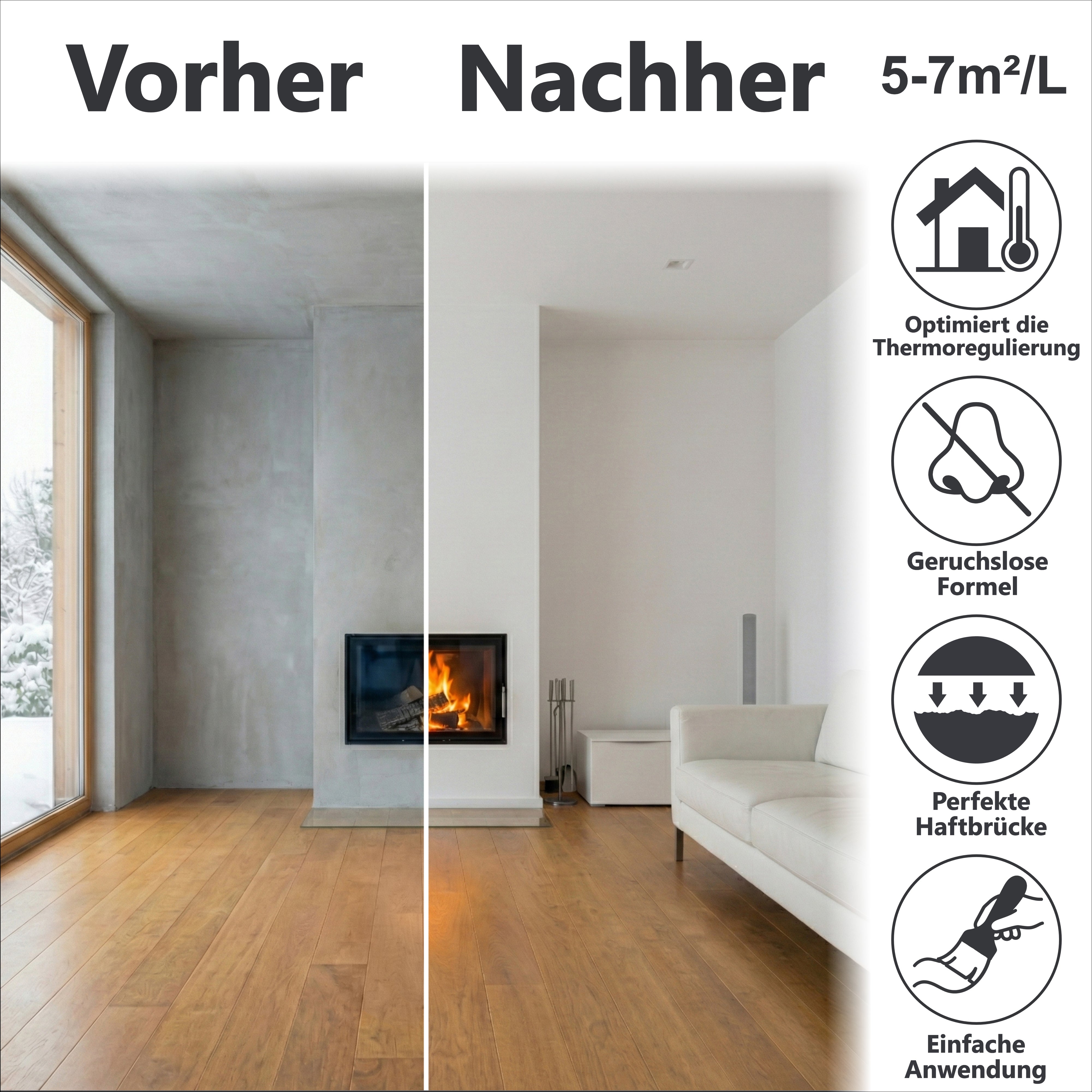Per un effetto ulteriormente ottimizzato, consigliamo la combinazione di W527 RIVESTIMENTO CLIMATICO PER FACCIATE per le pareti esterne e W529 VERNICE TERMICA PER INTERNI per pareti e soffitti interni.